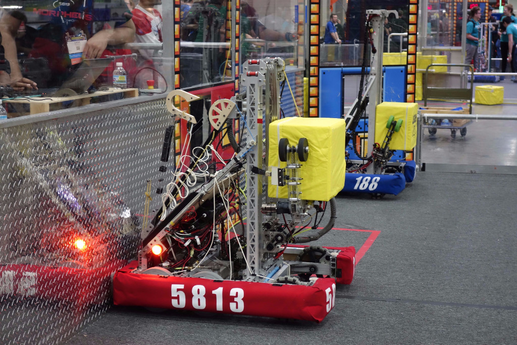 On July 14, 2018, Morpheus members travelled to South Portland, Maine, to compete in the 2018 Summer Heat offseason event, which is hosted by Team 58 (Riot Crew). After loading in, we were excited to see that the pits were right next to the field, which meant that we wasted almost no time walking to the field and we could watch every match. Unfortunately, we had a code issue which caused us to miss our first match, but we bounded back and ended the qualification rounds in fourth place. During Alliance Selection, we were picked by our friends Team 131 (CHAOS) to join Alliance 2. Together, we selected team 6153 (Blue Crew) to round out our alliance. In eliminations, we ran our scale auto and CHAOS ran their switch auto. Our alliance breezed through the quarterfinals and semifinals to face Alliance 1 in the finals. In the first match, we were behind after auto, but battled back and controlled the scale for over half the match. Unfortunately, we ended up losing Finals 1 by only 33 points. In Finals 2, Alliance 1 played very aggressive defense, which caused our alliance to struggle to keep up on the scale. Ultimately, we became event finalists and got an extremely neat trophy for our accomplishments! We had a great time working with Team 131 and Team 6153 and hope to work with them again soon! Thank you to Team 58 for hosting such a fun event!