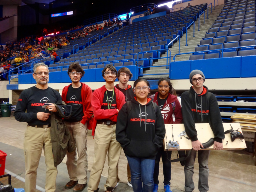 On April 26, 2016, Morpheus members set out on a quest for the FRC Championship in St. Louis. After a long plane ride and a 5-hour drive, we arrived in St. Louis to compete in the Galileo Subdivision for the title of World Champion. We were blown away by the size of the Dome and pits and had to walk 15 minutes from our pit in order to get into the queue! One highlight of the competition for us was talking with Team 254 (Cheesy Poofs) and Team 1678 (Citrus Circuits), which are two of the teams that we admire most. Once we had unpacked our crate and set up our pit, we were ready to compete with fantastic teams from all over the world! Out of our 10 qualification matches, we won 7. In our final qualification match, we set a personal record of 8 solo high goals! We were thrilled when we ranked 7 out of the 75 teams in our subdivision! This earned us the Highest Rookie Seed award in our subdivision. Performing extremely well during our qualification matches, we ranked high enough to form our own alliance for the elimination matches. For alliance selection, as the Alliance 5 captain, we selected Team 2468 (Team Appreciate) as our first pick for their fantastic breaching and high goal capabilities, Team 1153 (Robo-Rebels) as our second pick for their great breaching and feeding skills, and Team 2907 (Lion Robotics) as our third pick for their shut-down defense power. During our first match of the quarterfinals, we barely lost with an impressive score of 192 points to Alliance 4's score of 194 points. Despite that setback, we were still hopeful to beat Alliance 4, which was led by Team 3539 (Byting Bulldogs), and advance to the semifinals. In our second match, our alliance was on fire. We set another new personal record of 9 solo high goals! Unfortunately, we barely missed a capture (only two robots on the batter), and tied with a score of 175 to 175. Due to tiebreaker rules, we ended up losing that match. Although we had just been eliminated, we were proud of our ability to compete at a world-class level. We had a great time working with 2468, 1153, and 2907 and hope to compete with them in the future. After getting alliance pictures and cleaning out our eliminations pit, we sat down to watch Einstein. Our team cheered on the alliances, and celebrated the World Champions. We had a fantastic time competing with all of the other teams in the Galileo Subdivision and hope to return to the Championship next year! As a rookie team, we had set a goal of competing at the World Championship, and we succeeded! We became an alliance captain, met teams that we admire, formed bonds with other teams, and won an award. Morpheus is proud of our accomplishments from the World Championship!